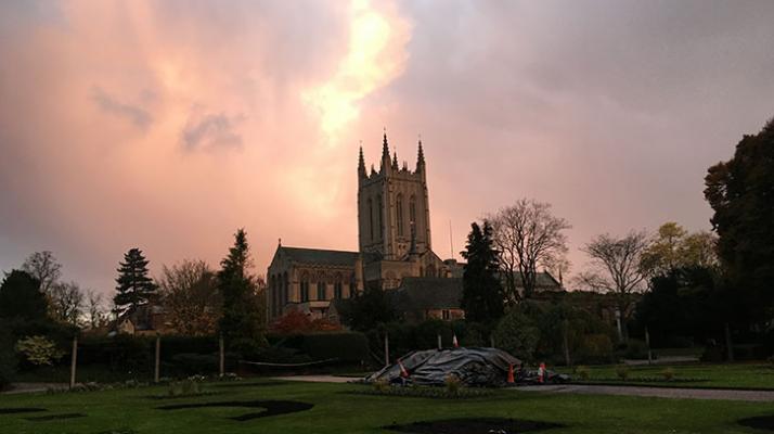 The trip to Bury began with a tour of the town led by Rob Head, the band’s conductor. We visited the various spaces in which the band have performed, ranging from the Cathedral and Abbey, to the modern Apex Arts Centre in the heart of town. I was struck by the diversity of the venues, which also included a restored Regency theatre – the Theatre Royal – demonstrating the band’s broad appeal and popularity amongst the concertgoers of Bury. Although the pandemic has halted live performance for a time, the band’s commitment to their audiences was apparent, and they, like me, are looking forward to making music in one of these spaces in the not-too-distant future.