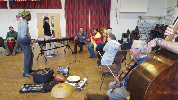 It has been a truly successful day. There was a definite air of apprehension at the start of the day and so it was great to see all the orchestra members get involved. There was a definite buzz amongst the group as we left, and we can’t wait to see how the piece will develop.