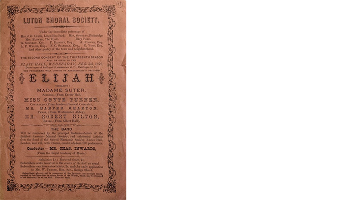 Luton Choral Society programme from a performance on 5 February 1879 of Mendelssohn's oratorio.