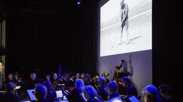 Esmeralda had composed seven short movements to accompany pieces of local film archive material. She had been to see us rehearse and had observed two important features about us. First that we were generally not good at following our conductor, Lindsay, and second that we had a tendency to speed up when playing. One of the movements she wrote for us was called ‘fast’ and required us to speed up to order! This, of course, we found was much more difficult than our usual unplanned method and required intense following of the conductor.