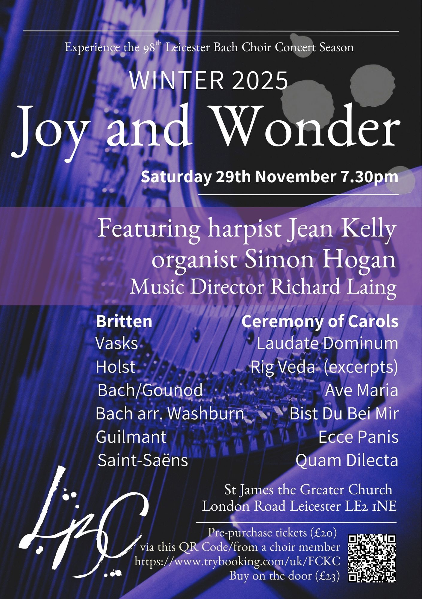 Glorious choral music including the setting for full choir and harp of Britten's Ceremony of Carols, and additional music inmculding works by Bach, Guilmant, Vasks & Saint-Saens.