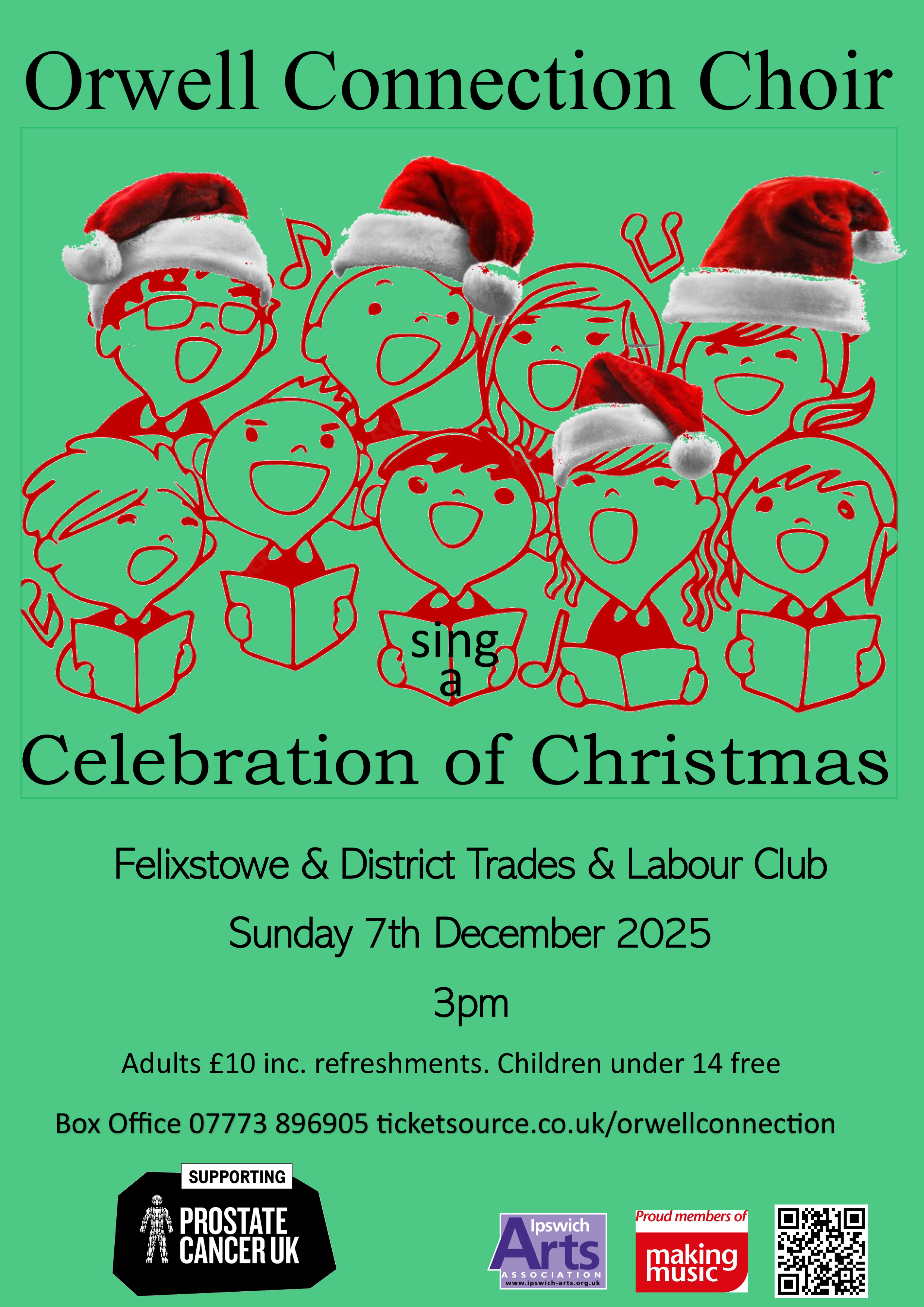 The Orwell Connection Choir presents its Christmas Concert on Sunday 7th December 2025 at 3.00pm, taking place at the Trades and Labour Club, Walton, Felixstowe IP11 9BB. Music includes Rutter (of course!), O Holy Night, a medley from The Polar Express and many more.