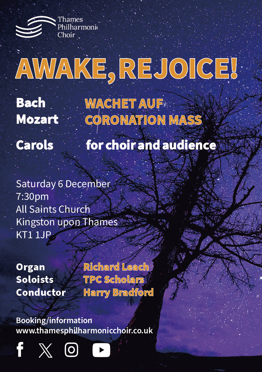 Thames Philharmonic Choir kicks off the Christmas season with an evening of festive music on Saturday 6 December at 7.30pm at All Saints Kingston.