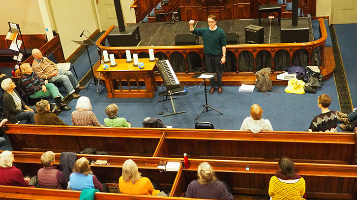 A sense of place is clearly important to Fergus, and this made it all the more important for him to come and visit, placing his boots on the ground of the Upper Calder Valley. It was wonderful to finally meet him, to show him some hospitality, and for him to attend a full choir rehearsal in person. Once the choir was warmed up, Fergus took the reins and led us through a series of exploratory sketches.