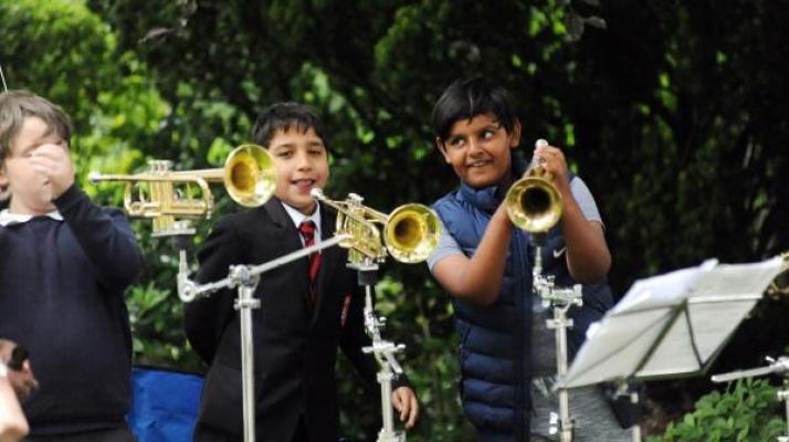 An ensemble formed of OHMI music makers from Birmingham perform at a summer garden party
