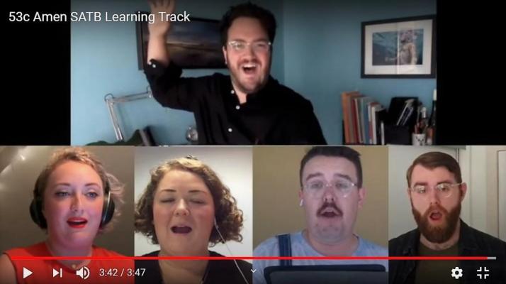 Andy McTaggart, music director, leads soloists through an online rehearsal