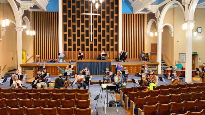 After a green light from the government, the Sheffield Philharmonic Orchestra resumed in-person rehearsals, but with half its players joining in from home. Alex Burns, the orchestra's Publicity Officer, tells us more about the journey