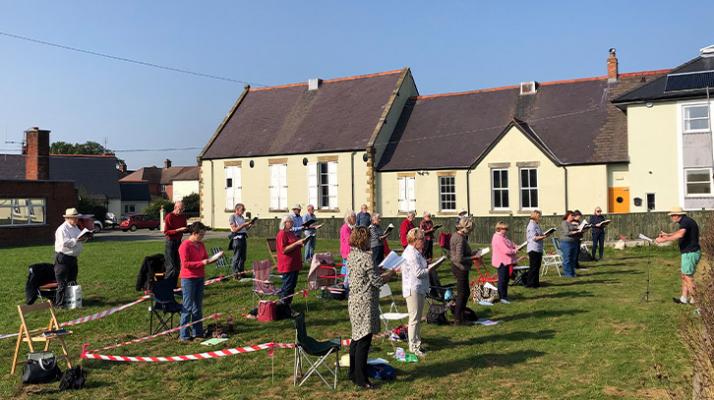 Guidance for England changed shortly after this meeting but we were determined to sing together again and found another venue, this time a grassy car park next to a chapel in Wales. Again, we had a gorgeous sunny afternoon in October and again we revelled in the opportunity to sing together.