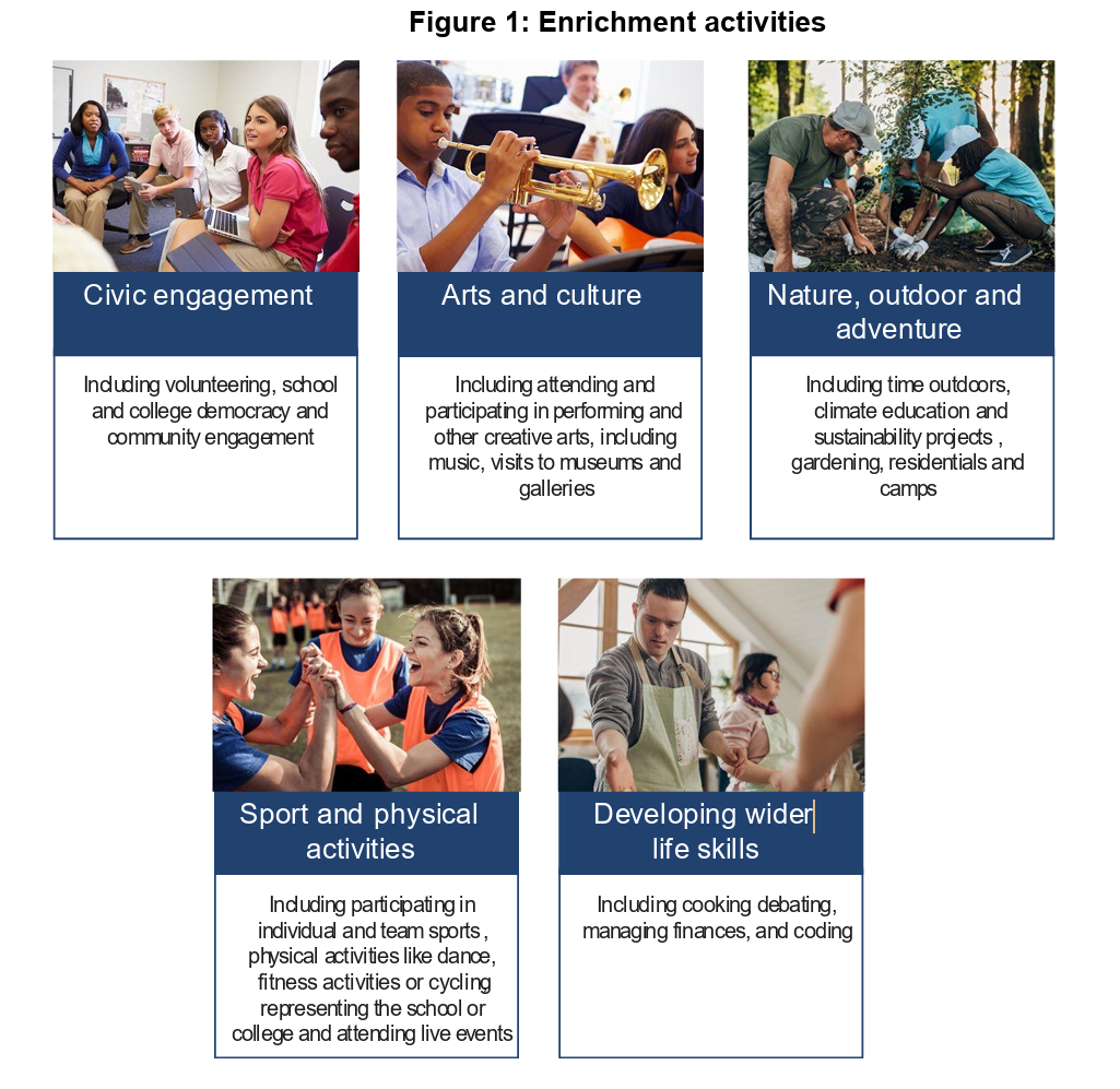 - ‘… we will provide information on schools’ enrichment opportunities in the new School Profiles… We will consult on how enrichment is embedded in School Profiles, ensuring they are codesigned with the input of schools ...’ (p. 40)